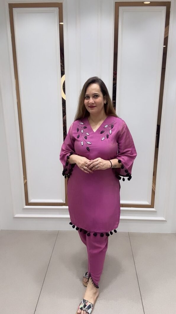 Bottom Wear: The kurta is paired with matching solid purple pants, completing the coordinated look and ensuring comfort.